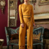 JUMPSUIT IN CREPE ADORNED WITH A BLACK LACE COAT.
