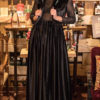 FUCHSIA V-CUT TULLE METALLIC JUMPSUIT, DECORATED WITH GUIPURE FLOWERS AND A TAIL OF THREE LAYERS OF TULLE.